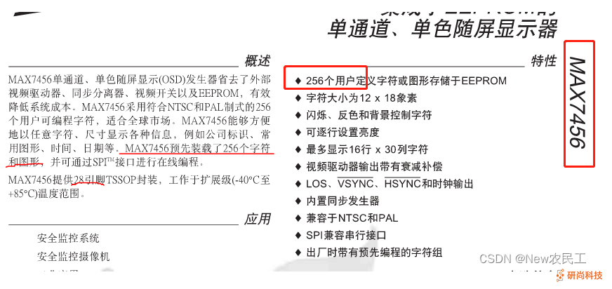 OSD叠加芯片:AT7456E 【可以在立创商城中搜索PDF的文档】