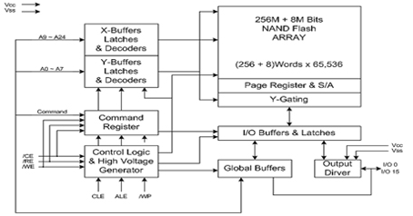 AFND5616U1为256Mbit,备用容量为8Mbit。该器件采用3.3V电源供电。