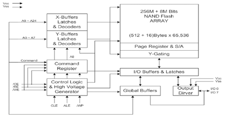 可以在264Word上典型地以200us执行编程操作,而在8KWord块上典型地以2ms执行擦除操作。每个字可以30ns的循环时间读取页面中的数据。 I/O引脚用作地址和数据输入/输出以及命令输入的端口。使用/CE,/WE,ALE和CLE输入引脚同步引入命令,数据和地址。每次操作期间,输出引脚R/B(漏极开路缓冲器)发出信号以指示设备状态。在具有多个存储器的系统中,R/B引脚可以全部连接在一起以提供全局状态信号。片上写控制可自动执行所有编程和擦除功能,包括在需要时进行脉冲重复以及内部验证和数据余量处理。通过为ECC(纠错码)提供实时映射算法,即使是写密集型系统也可以利用AFND5616U1扩展的100K编程/擦除周期可靠性。